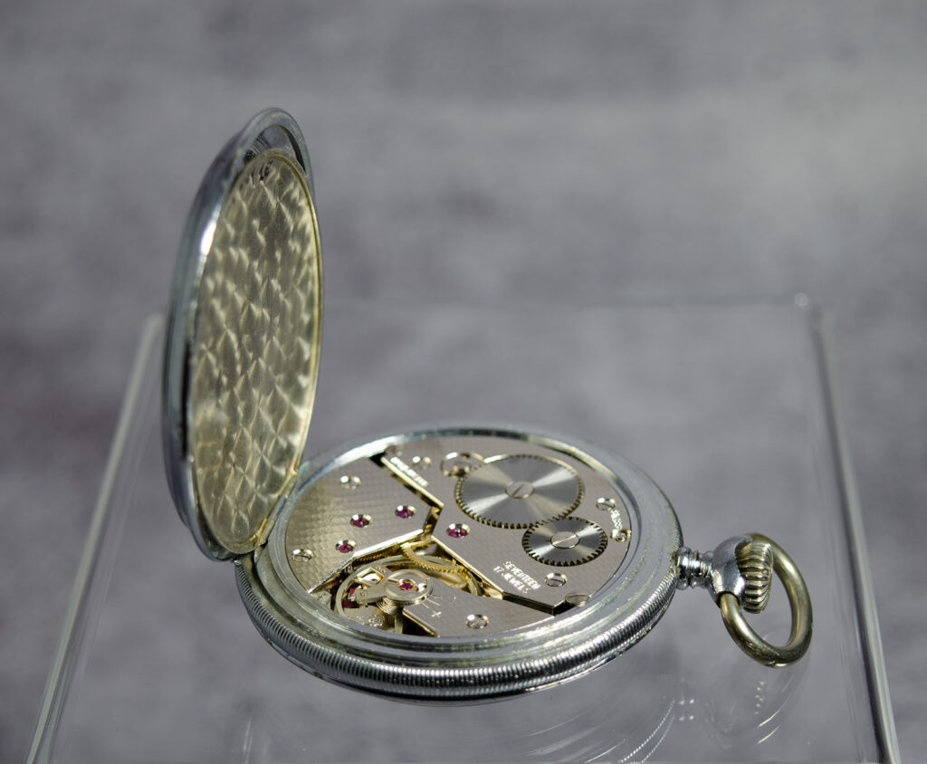 What made this movement special was its superior construction compared to typical budget watch calibers. Unlike many American pocket watches of the era, the 6431/6445 included shock protection, a moveable stud holder for fine regulation, and a flat hairspring—features that made it both more reliable and easier to service.