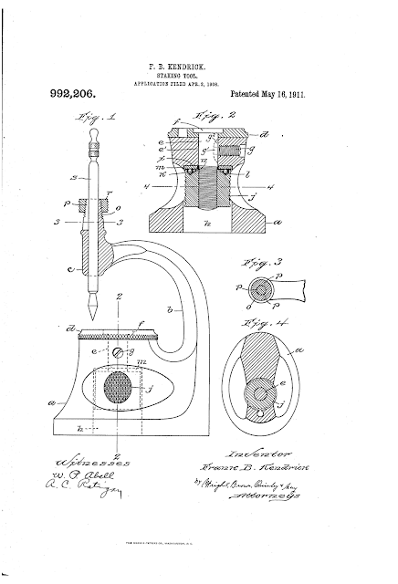 The part of the device above described is no different from the standard spring winder which has long been on the market and is substantially the same in essential respects as the device illustrated, for example, in the patent to A. F. Robbins, No. 325,973, granted September 8, 1885, and I make no claim to the same as a part of my invention. The feature in which my invention consists is that which permits a ready removal and substitution of different arbors for the pur pose of permitting springs of different sizes to be wound, the essentials and the preferred form of construction of which appear from the remainder of this specification.